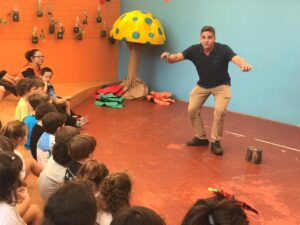 Desta vez o conto foi “Kirikou e a Feiticeira”. O Professor Ronie esteve presente especialmente para esta atividade. Ele contou sobre esse personagem pequenino que enfrentou uma feiticeira má com coragem, pureza e inteligência. Enquanto todos de sua aldeia choravam por ela ter transformado tudo em lama, Kirikou, com sua curiosidade, descobriu que se tratava de argila e que era possível construir muitas coisas com ela.